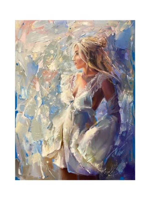 • Obraz malowany farbami olejnymi na płótnie bawełnianym o wymiarze 70×50cm, rok wykonania 2025.